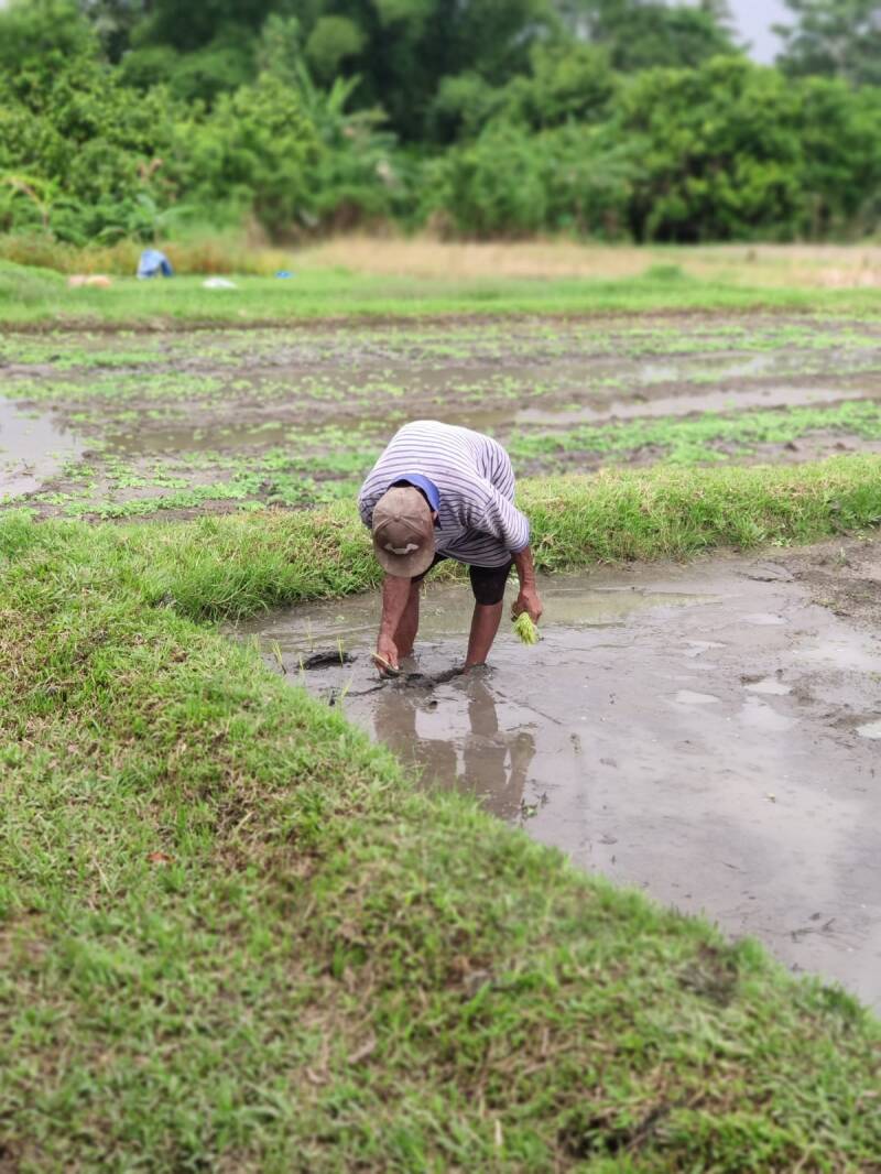 L'utilisation de tracteur se développe mais certains champs sont encore labourés avec les boeufs. Quant à la plantation elle se fait manuellement, à reculons et à pieds nus !