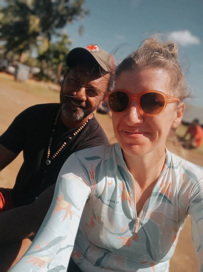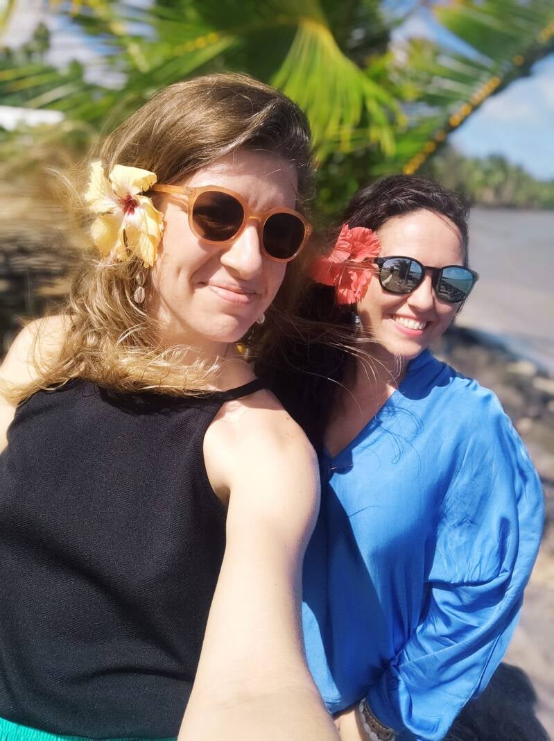 Béa (à gauche) est sage femme, elle est ici avec son mari Sébastien : le dorénavant célèbre DJ Bastouille qui anime nos soirées. Ils ont deux enfants, Rose et Gabriel. Ils quitteront le territoire prochainement et ils nous manqueront beaucoup mais rendez-vous est déjà pris en métropole pour se revoir :-)