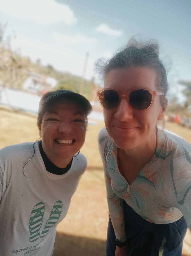 La course se décline sur deux distances : 20 et 30km. J'ai hésité jusqu'au dernier jour des inscriptions mais me suis finalement alignée avec 10 autres filles sur le parcours des 20kms :-) ! Ca n'a franchement pas été qu'une partie de plaisir : j'ai beaucoup dérivé et chaviré deux fois. Malgré tout, j'ai tenu bon et atteint la ligne d'arrivée à la dernière place en 2h56 soit 34' après la première arrivée. J'ai pu enfin embrasser et serrer Gabrielle qui m'attendait à la sortie de l'eau ! Les équipes de sécurité autour ont été au top et cette expérience restera quoi qu'il arrive un beau souvenir de mon aventure ici :-)