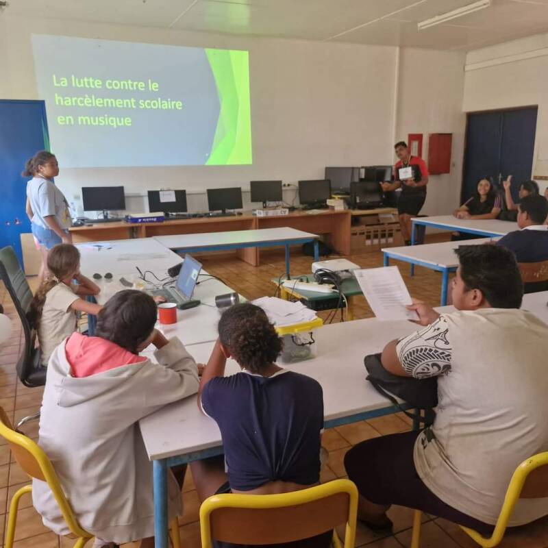 Tout comme en métropole la lutte contre le harcèlement scolaire est organisée ici. Gabrielle a pris part au sein de son collège au projet pHARe (programme de lutte contre le HARcèlement à l'école). Elle a participé à plusieurs réunions au cours de l'année afin de définir une action auprès des autres élèves du collège. Cette action a eu lieu ce jeudi 8 novembre, elle a pu transmettre les messages de prévention à ses camarades.